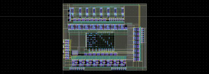 This project focuses on the design and implementation of an 8-bit microprocessor using TSMC 65nm CMOS technology. The microprocessor was developed at the transistor level with key components, including a ripple carry adder, logic shifter, multiplexer, 8x8 SRAM, PLA, latch, bus driver, and accumulator. Schematic design, logic functionality, sizing, and layout optimization were conducted using Cadence Virtuoso, achieving a compact chip area of 0.0149 mm² and a critical path delay of 137 ps. The design integrates functional dataflow units, register files, and memory to support reliable instruction execution. Clock cycle timing was simulated with Spectre to ensure functional correctness and latency optimization. The layout was validated with Design Rule Check (DRC) and Layout Versus Schematic (LVS) verification.